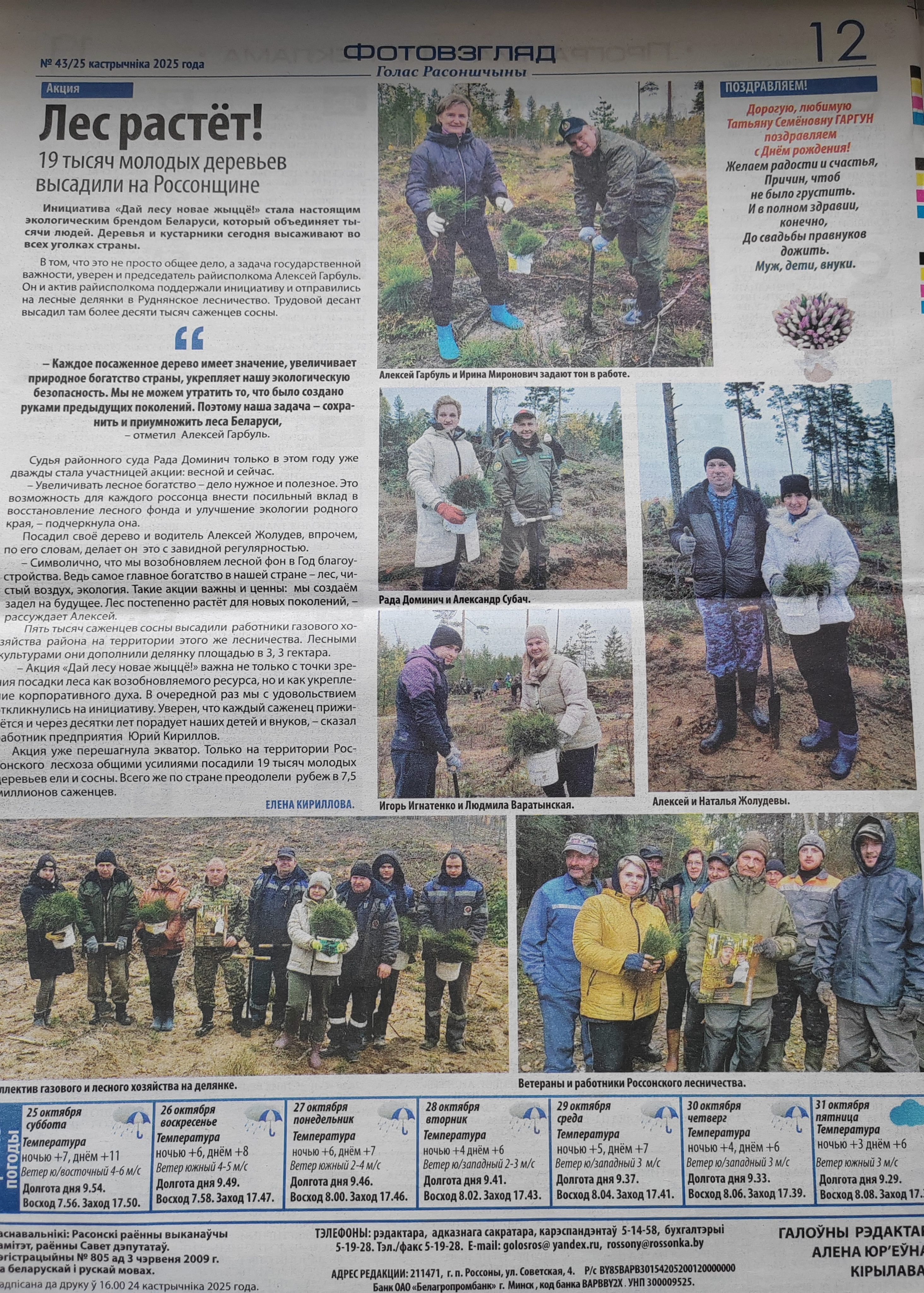 Как проходит республиканская акция "Дай лесу новае жыццё" на Рассонщине, читаем в субботнем номере газеты "Голас Расоншчына".