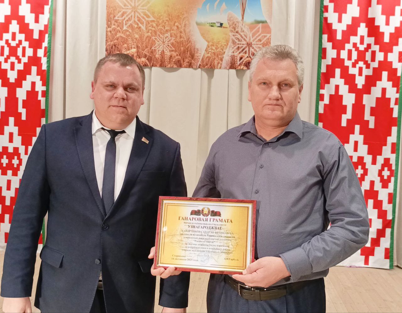 В уборочной кампании 2025 года были задействованы работники Россонского лесхоза, среди которых водитель автомобиля Руднянского лесничества Андрей Кондратьев был сегодня награждён Почётной грамотой Россонского районного исполнительного комитета.