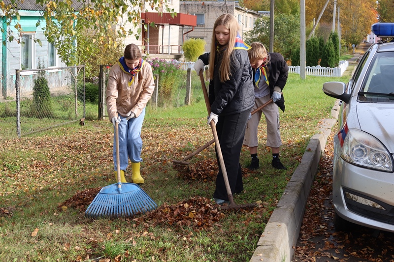 В рамках акции юные активисты вместе со спасателями посетили домовладения пенсионеров и оказали им посильную помощь в уборке придомовых территорий.