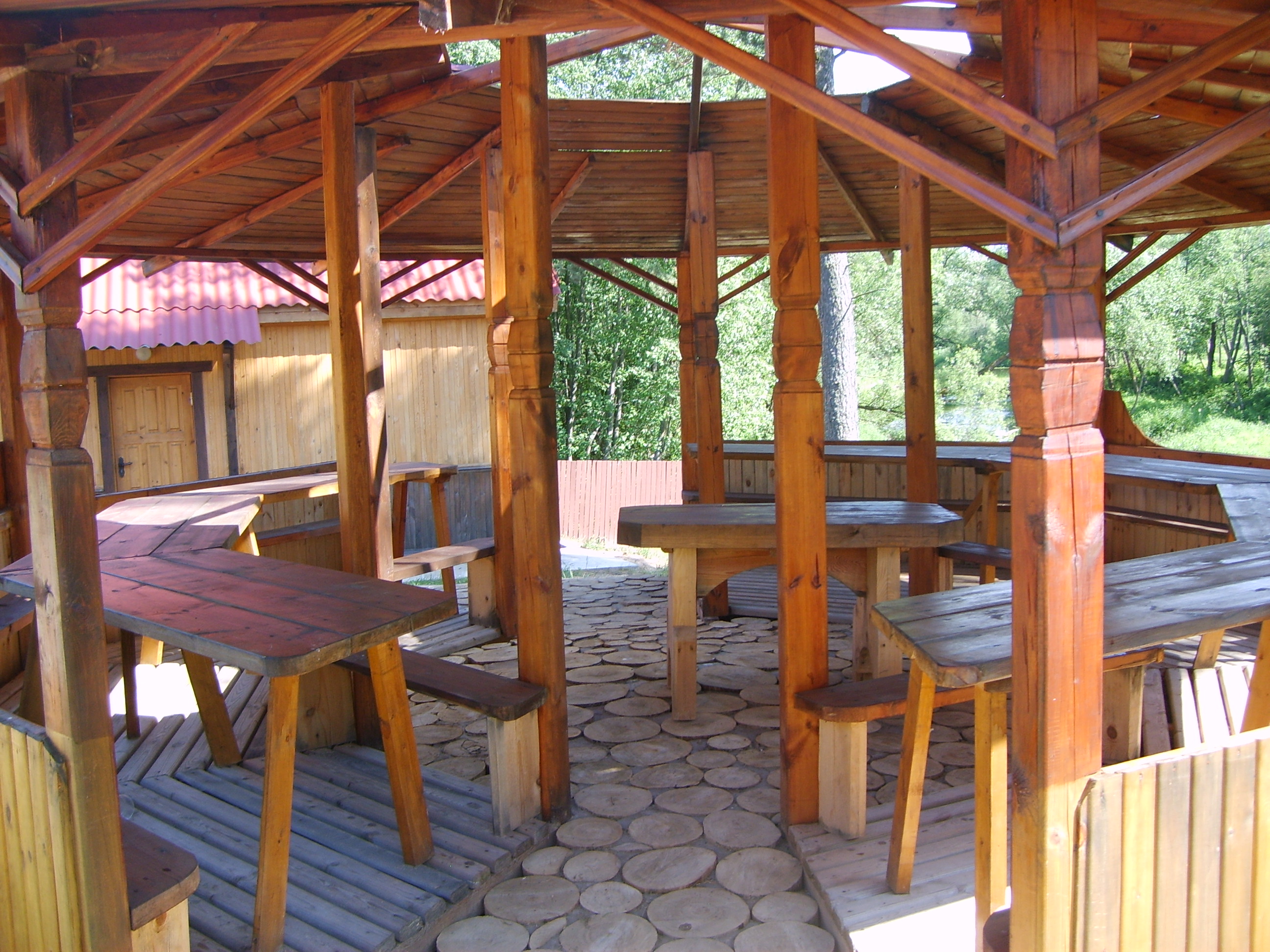 Какой же отдых на природе без шашлыка? Поэтому для удобства отдыхающих рядом со строениями установлена большая беседка с мангалом для приготовления ароматного шашлыка. В беседке могут разместиться до 50 человек. На территории комплекса есть и ещё одна беседка, правда, поменьше.